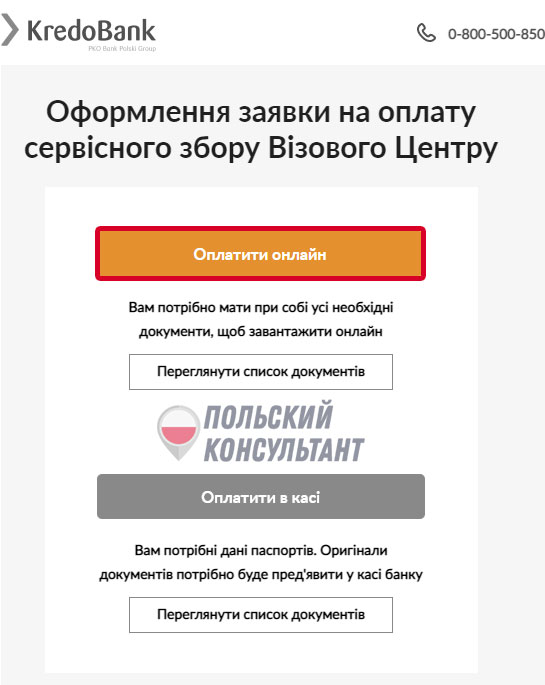 Оплата визового сбора через Кредобанк